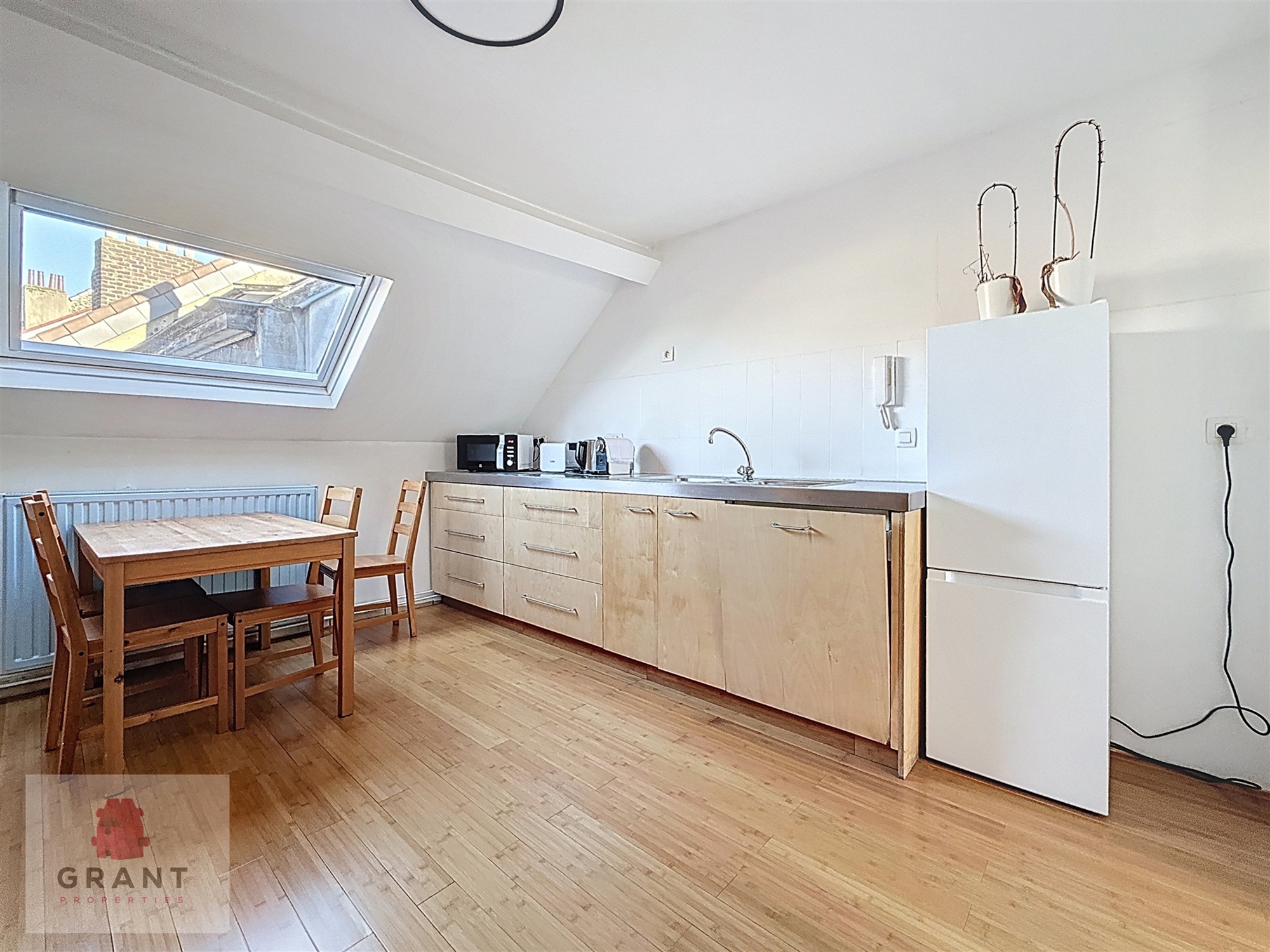 La Chasse – Saint Antoine – Grant Properties vous propose en exclusivité cet appartement 1 chambre meublé de ±55 m², situé au 3e étage d'un petit immeuble, à l’Avenue Jules Malou, à proximité des commerces et des transports en commun. L’appartement se compose comme suit : hall d'entrée, salle de douche avec toilette, un séjour de ±16 m², une spacieuse cuisine équipée (frigo, congélateur, taques, hotte, lave-vaisselle), au 4e étage une grande chambre de ±15 m² Châssis double vitrage, chaudière au gaz. Compteurs individuels pour le gaz et l’électricité. Forfait de charges de 50 €/mois comprenant les charges communes et l’eau froide. Convient pour une personne seule ou un couple – Libre immédiatement. PEB : G