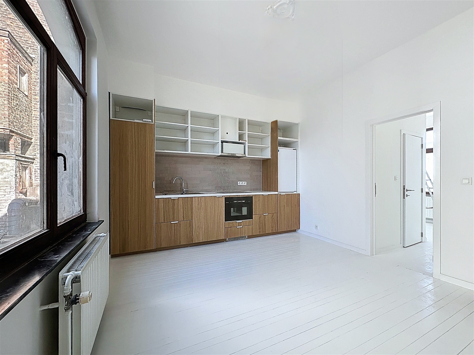 Square Meudon - Au 1er étage/ 2 (sans ascenseur), appartement de +- 35m² comprenant: pièce principale living/salle à manger/cuisine équipée (four combi micro onde, frigo avec petit surgélateur, taque, hotte, évier, machine à laver), salle de douche avec douche a l'italienne et wc, chambre à coucher. Forfait 120€ (eau, chauffage et électricité). Electricité conforme, parquet partout, hauts plafonds, nouvelle chaudière au gaz à condensation, PEB F. Proche des commerces de l'av Georges Henri, du parc et des transports ( A 300m du métro Gribaumont). Accès facile au centre, ring, E40). Libre immédiatement, bail de 1 an min. Non meublé. Pour une personne seule.