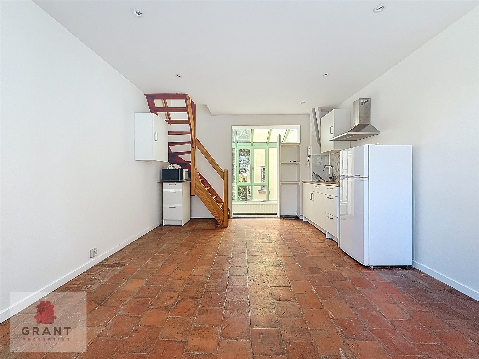 CINQUANTENAIRE - Dans une petite rue calme d'Etterbeek - Charmant "pavillon" 1 chambre de 45m2 fraîchement rénové offrant ± 45m² et composé comme suit: hall d'entrée, séjour de 20m2 avec cuisine ouverte comprenant (frigo, taques, hotte, micro,ondes), à l'étage en mezzanine, espace de chambre avec salle de douche et toilette.